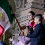 Ecatepec, Méx., a 15 de septiembre de 2025.-Azucena Cisneros Coss, primera presidenta municipal de Ecatepec, dio el Grito de Independencia y recordó a los héroes que nos dieron patria y libertad; también pidió que muera la corrupción, la deshonestidad y la impunidad.