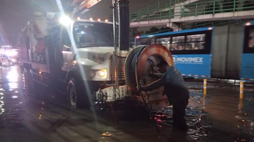 En la Av. Nacional, con apoyo de un equipo de presión-succión, se abatieron los niveles de agua a la altura de la estación Hidalgo. En la colonia Jardines de Morelos se levantaron tapas de pozos de visita y se retiró basura que obstruía el flujo pluvial. Asimismo, en Av. Tero, Rinconada de Aragón, se mitigaron encharcamientos que afectaban tres carriles de la vialidad, restableciendo la circulación de manera normal.