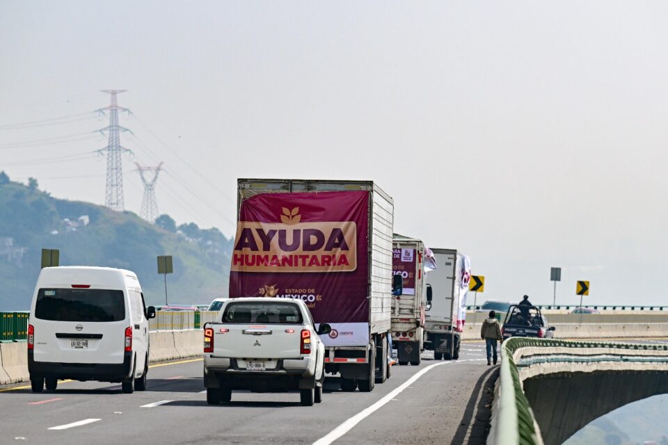 TOLUCA , Estado de México.– Las 15 toneladas de ayuda humanitaria, víveres y maquinaria enviadas por el Gobierno de la Maestra Delfina Gómez, llegaron esta tarde al Aeropuerto Nacional Ingeniero Juan Guillermo Villasana de Hidalgo, donde la Guardia Nacional, Secretaría de la Defensa Nacional (Defensa), Marina y Gobierno de Hidalgo, organizan la descarga de los apoyos recibidos a nivel nacional.