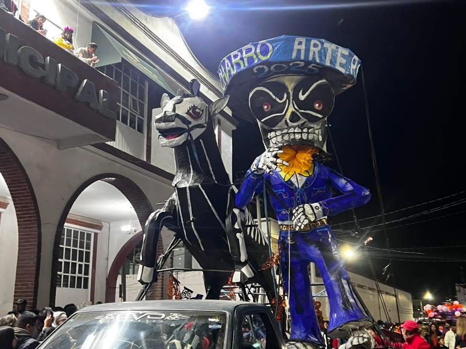 Este espectacular paseo con La Catrina formó parte de un amplio festival cultural que se realizó de la mano con una gran muestra de altar que fue instalada en los arcos de la presidencia municipal.