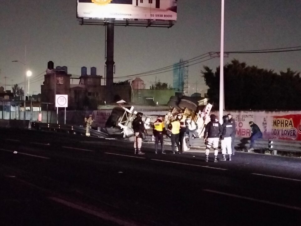 La autopista México-Pachuca permanece cerrada en dirección a Pachuca mientras alrededor de 30 bomberos aguardan la llegada de una grúa industrial que permita reincorporar el tanque cisterna, controlar por completo la fuga y realizar el trasiego de forma segura en caso de ser necesario.
