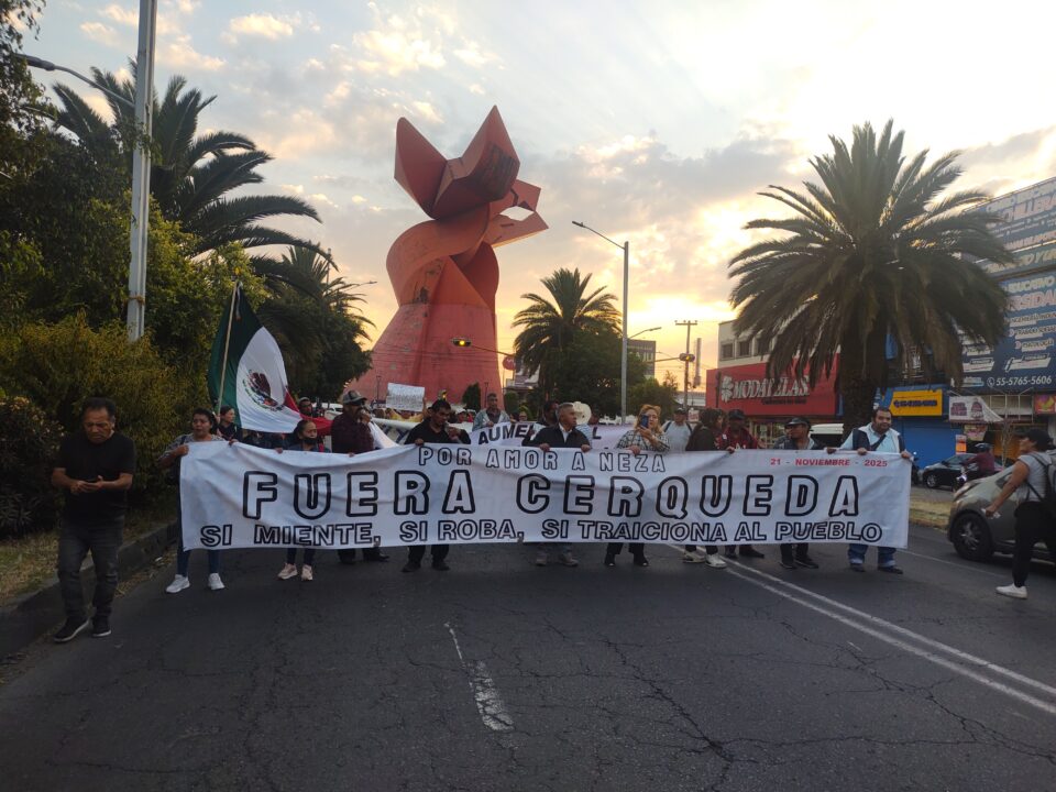 Nezahualcóyotl, Méx. 22 de noviembre de 2025. Una manifestación vecinal contra la gestión del alcalde Adolfo Cerqueda Rebollo culminó con cuatro personas detenidas y un comerciante intimidado en su local, en un ambiente de alta tensión y fuerte presencia policial.