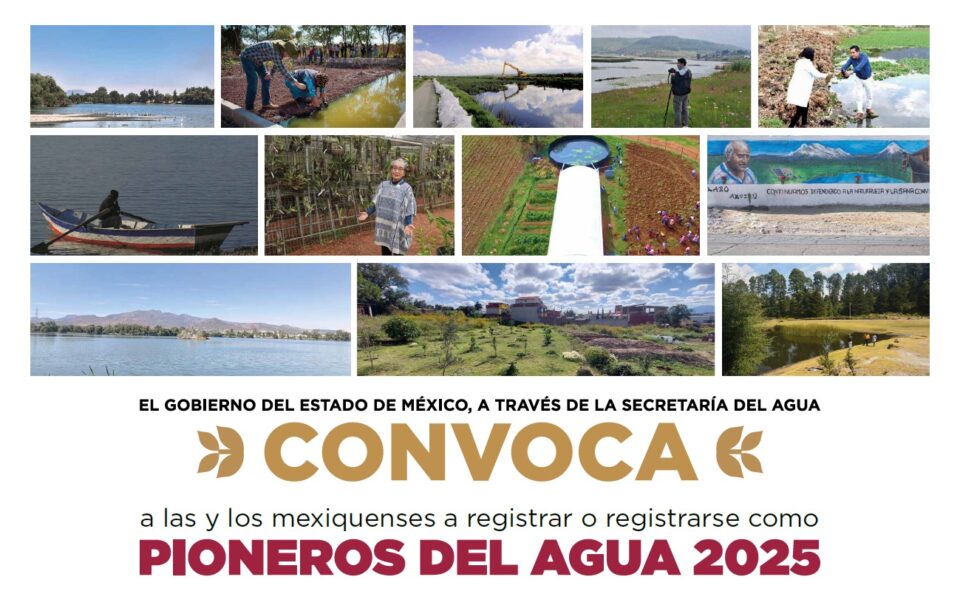 TOLUCA, Estado de México.– El Gobierno de la Maestra Delfina Gómez Álvarez, a través de la Secretaría del Agua (Sagua), invita a las y los mexiquenses a participar en la convocatoria “Pioneros del Agua 2025”, iniciativa que reconoce trayectorias, proyectos innovadores y acciones sobresalientes en materia de gestión hídrica, uso responsable del recurso y fortalecimiento de su cuidado en comunidades, instituciones y organizaciones del Estado de México.