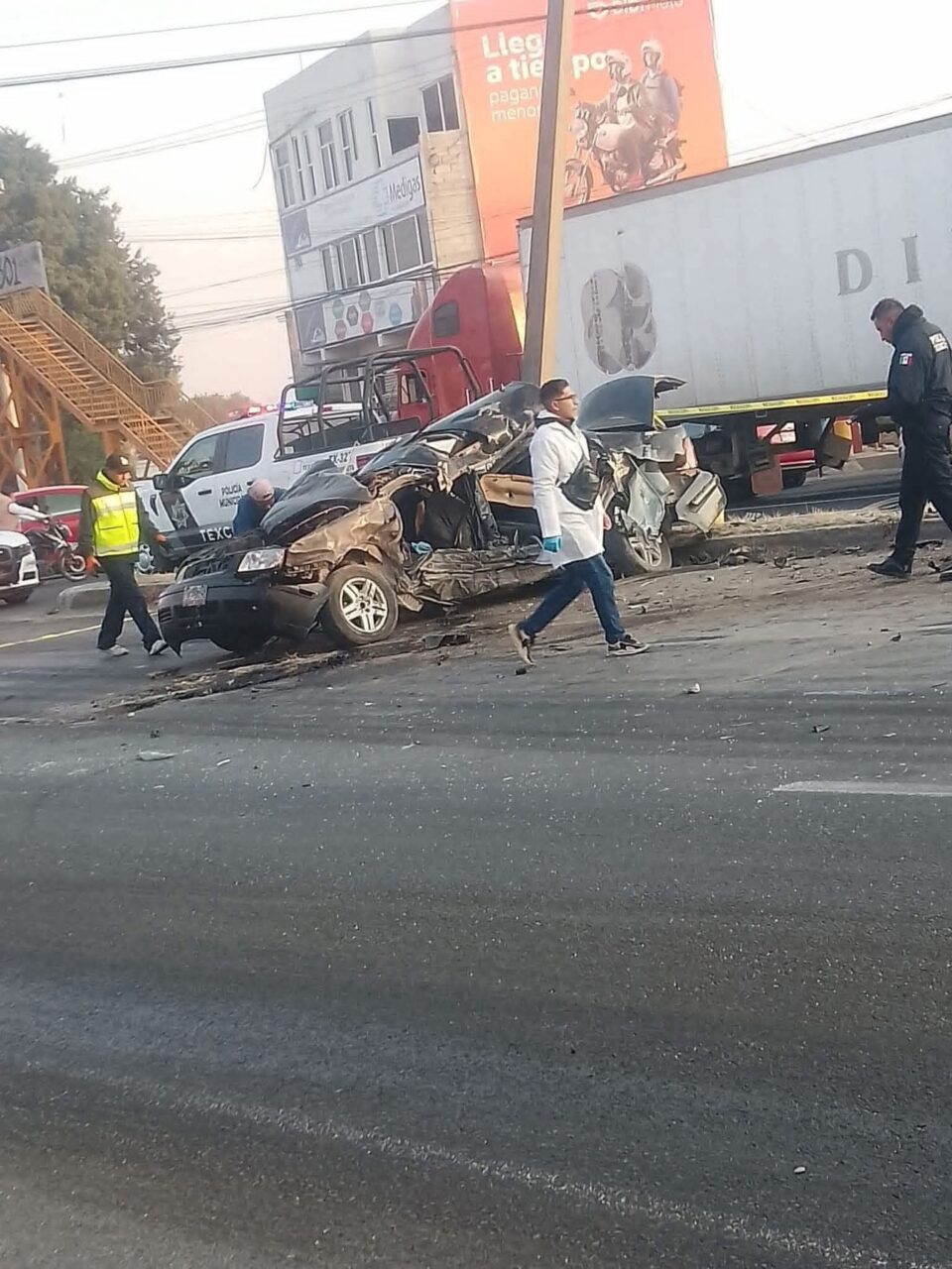 TEXCOCO, Méx., 2 de diciembre de 2025.- Un fuerte accidente registrado la mañana de este martes sobre la carretera federal Lechería-Texcoco, a la altura de la entrada a La Magdalena Panoaya, dejó como saldo a una persona sin vida y generó un severo congestionamiento vehicular en ambos sentidos.