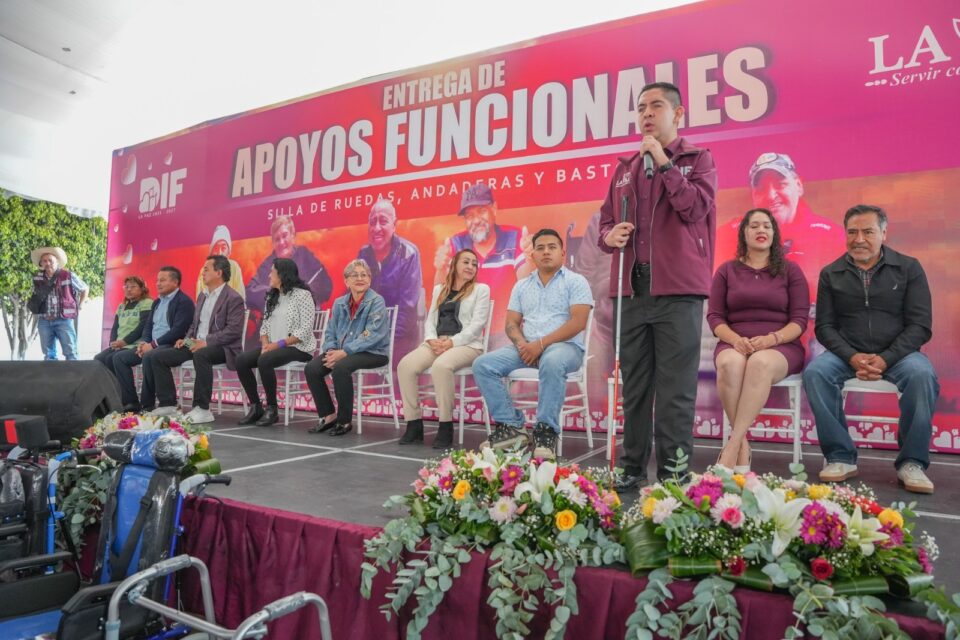 La Paz, Edomex, a 2 de diciembre.- “Hay un compromiso moral con ustedes», aseguró la Presidenta Municipal, Martha Guerrero Sánchez, ante adultos mayores y personas con capacidades diferentes, durante la celebración del Día Internacional de las Personas con Discapacidad, organizado por el DIF Municipal, en la que se realizó la Entrega de Apoyos Funcionales: sillas de ruedas, andaderas, bastones, así como prótesis de mano, entre otros.