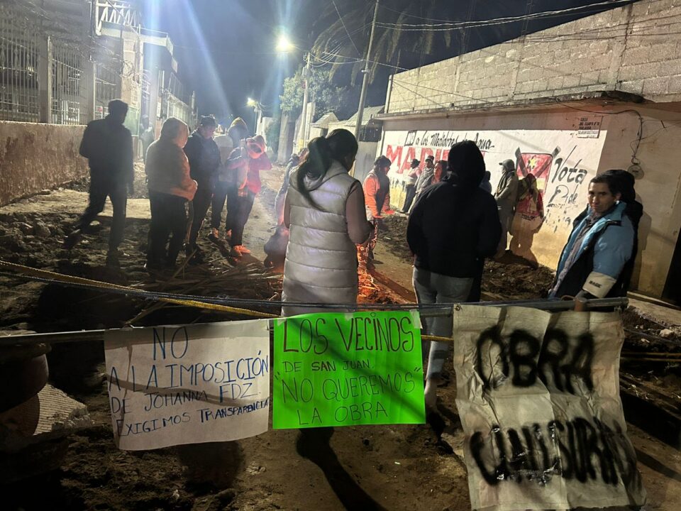Tenango del Aire, Méx.- 30 de diciembre de 2025. Pobladores del municipio de Tenango del Aire suspendieron una obra en la delegación de San Juan Coxtocan, luego de que el gobierno encabezado por Johanna Fernández Sánchez intentara iniciar los trabajos durante la madrugada de este martes.