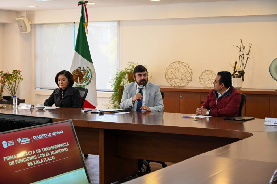 METEPEC, Estado de México.– Para desarrollar comunidades mejor ordenadas, el Gobierno del Estado de México transfirió nuevas facultades al municipio de Xalatlaco en materia de desarrollo urbano para que los ciudadanos de esa demarcación acudan ante sus autoridades municipales a tramitar licencias de uso de suelo, densidad o altura de edificaciones en un predio, entre otros, que antes solo se podían realizar ante la administración estatal, a través de la Secretaría de Desarrollo Urbano e Infraestructura (Sedui).