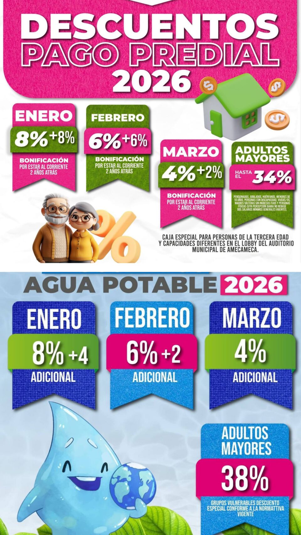Aprovecha los descuentos por pronto pago en tu impuesto predial, durante el mes de enero obtendrás el 8 % de descuento, más un 8 % de bonificación adicional por haber cumplido con tu pago puntual de dos años anteriores.