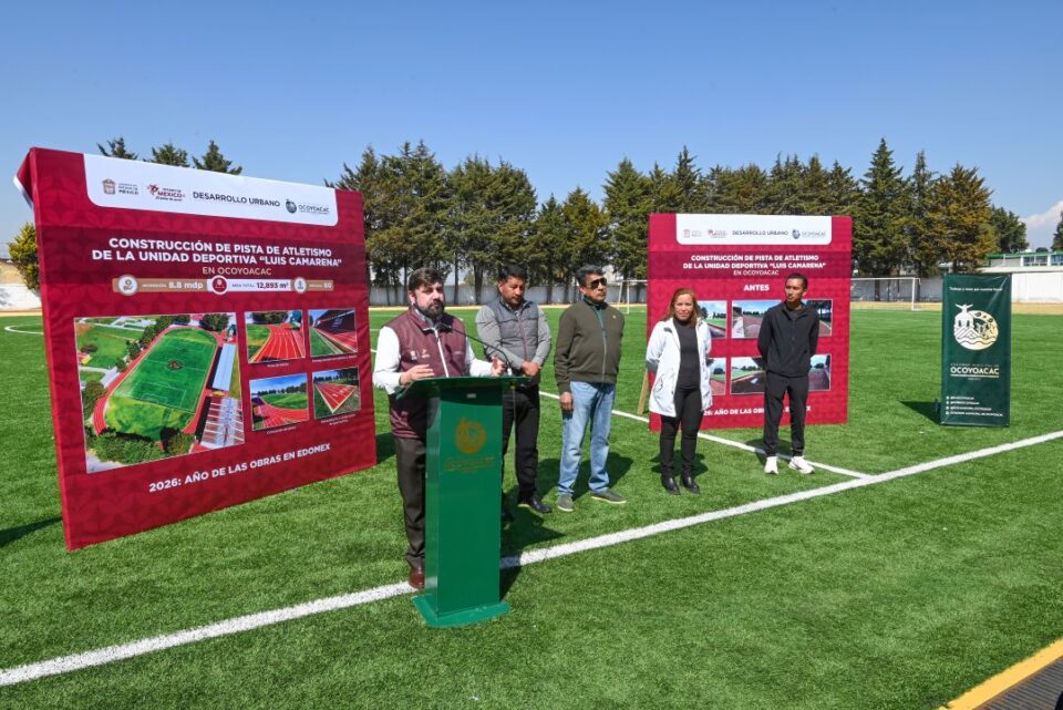 OCOYOACAC, Estado de México.– En este “2026, Año de las Obras en el EdoMéx”, la Gobernadora Delfina Gómez Álvarez cumplió su palabra con las y los atletas de Ocoyoacac al entregar la nueva pista de atletismo de la Unidad Deportiva “Luis Camarena”, con una inversión de 8.8 millones de pesos.