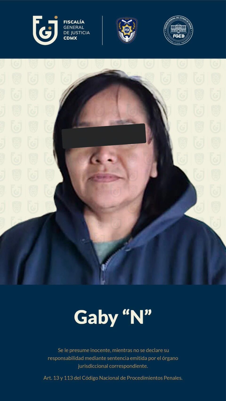 La detenida fue notificada de sus derechos y posteriormente trasladada a la Ciudad de México para ser puesta a disposición de la autoridad competente.