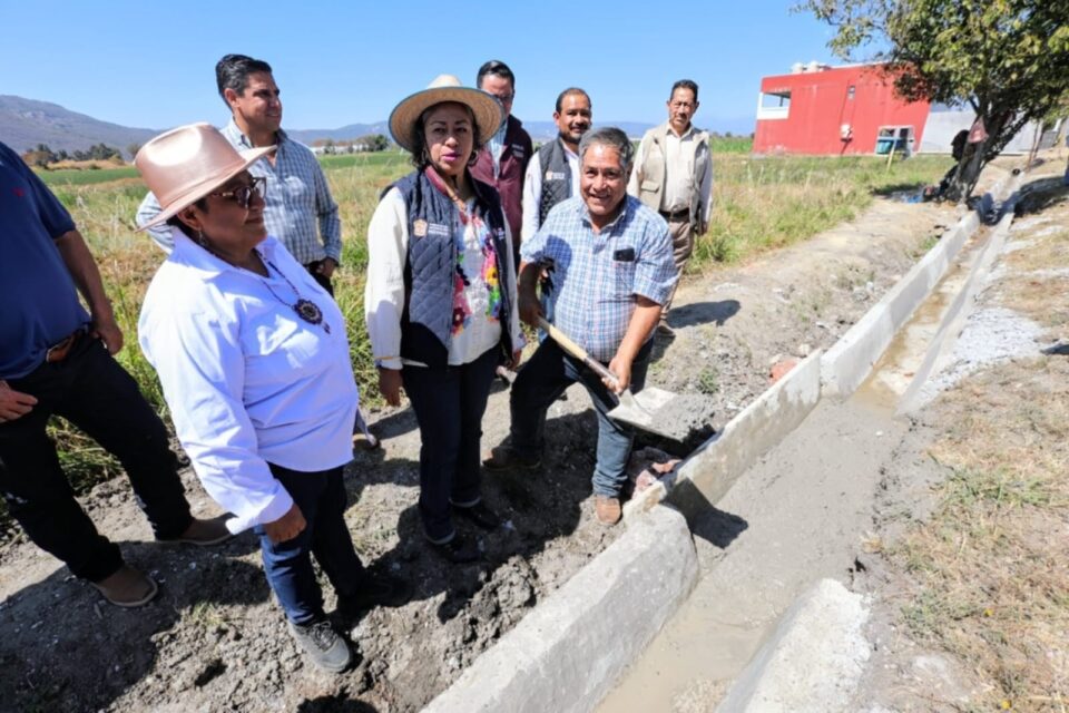 La titular de la SeCampo supervisó también la obra de recubrimiento de un canal de riego en la comunidad de San Felipe, donde se proporcionaron 130 toneladas de cemento para revestir aproximadamente un kilómetro del canal que irriga 100 hectáreas de fresa y flor, cultivadas por 150 pequeños productores.