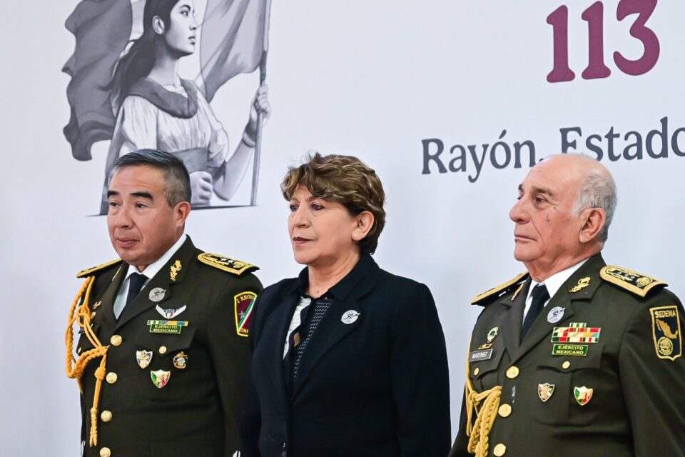 RAYÓN, Estado de México.– La Gobernadora del Estado de México, Delfina Gómez Álvarez, asistió a la ceremonia conmemorativa del 113 Aniversario por el Día del Ejército Mexicano en las instalaciones de la 22/a Zona Militar en el municipio de Rayón, donde entregó reconocimientos a tres mujeres integrantes de las Fuerzas Armadas.