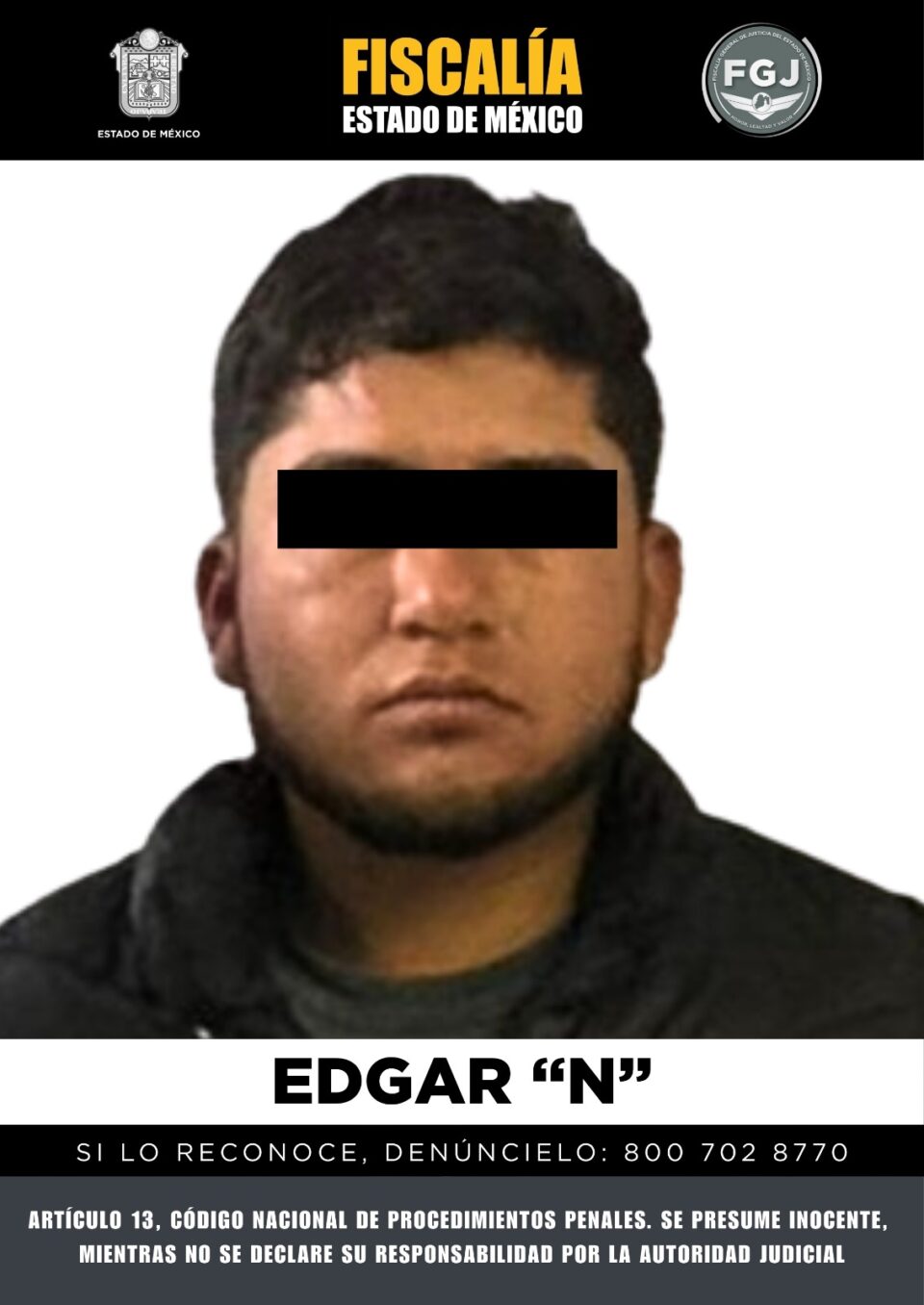 CUMPLIMENTA FISCALÍA EDOMEX ORDEN DE APREHENSIÓN CONTRA PRESUNTO RESPONSABLE DEL DELITO DE HOMICIDIO DOLOSO EN GRADO DE TENTATIVA EN AGRAVIO DE UN MENOR DE EDAD