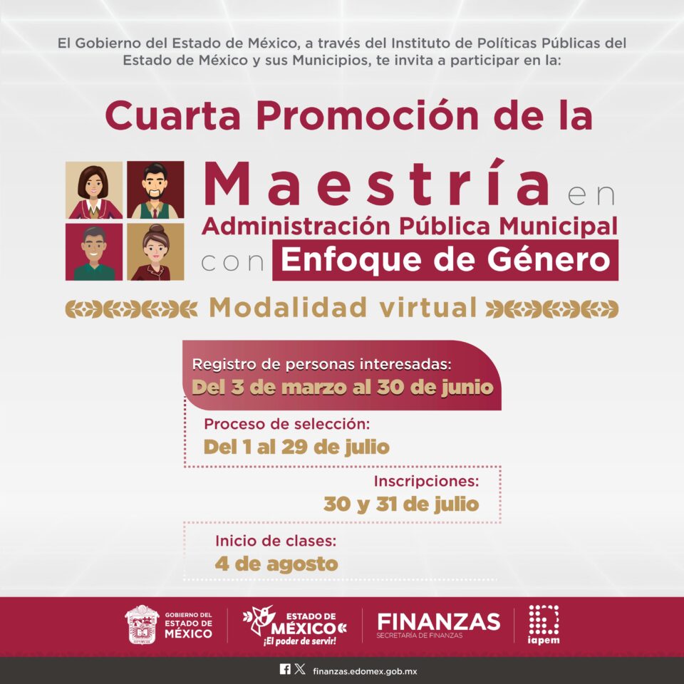 Abre Gobierno del EdoMéx convocatoria para estudiar Maestría en Administración Pública Municipal con Enfoque de Género