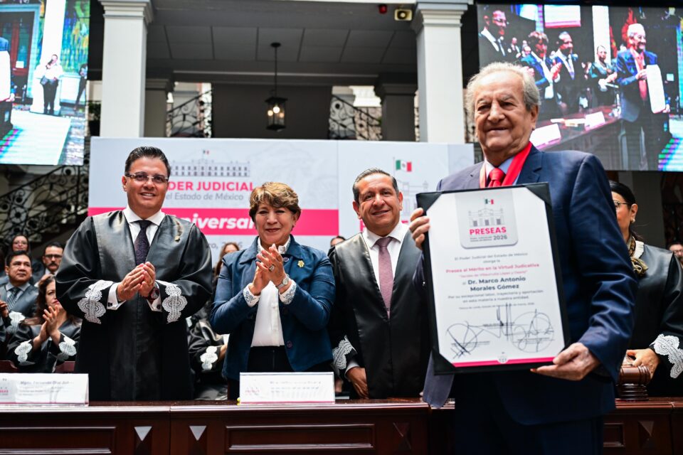 TOLUCA, Estado de México.– La Gobernadora Delfina Gómez Álvarez afirmó que su administración coloca a la justicia como eje del bienestar en el Estado de México, en el marco de la entrega de las Preseas 2026 del Poder Judicial mexiquense, donde reconoció la trayectoria de mujeres y hombres que han dedicado su vida al servicio del derecho y la legalidad.