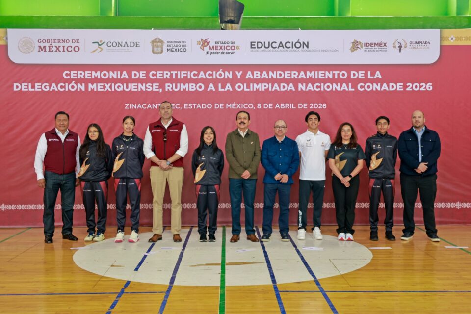 ZINACANTEPEC, Estado de México.– Más de mil deportistas que representarán al Estado de México en los Juegos Nacionales CONADE 2026 fueron abanderados por Miguel Ángel Hernández Espejel, Titular de la Secretaría de Educación, Ciencia, Tecnología e Innovación (SECTI), durante la ceremonia cívica-deportiva celebrada en el Gimnasio de Baloncesto de la Ciudad Deportiva “Lic. Juan Fernández Albarrán”.