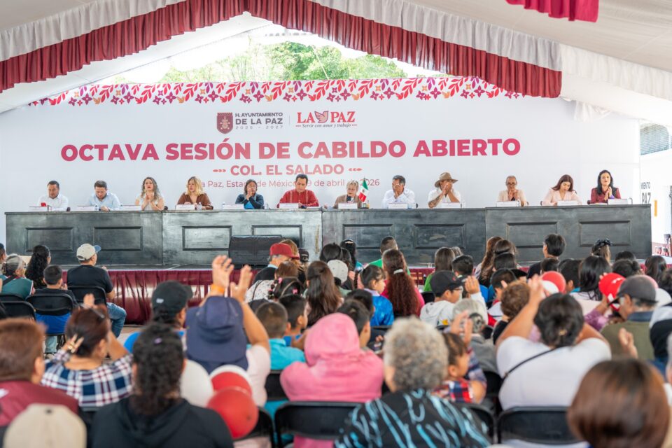 La Paz, Edomex., a 09 de abril de 2026.— “La administración de La Paz ha sido clara realizando un gobierno de territorio y no solo de escritorio”, afirmó la Presidenta Municipal de La Paz, Martha Guerrero Sánchez, al encabezar la Octava Sesión de Cabildo Abierto en la colonia El Salado, donde destacó obras de pavimentación de calles en esta comunidad y escuchó a la población durante el planteamiento de sus peticiones.