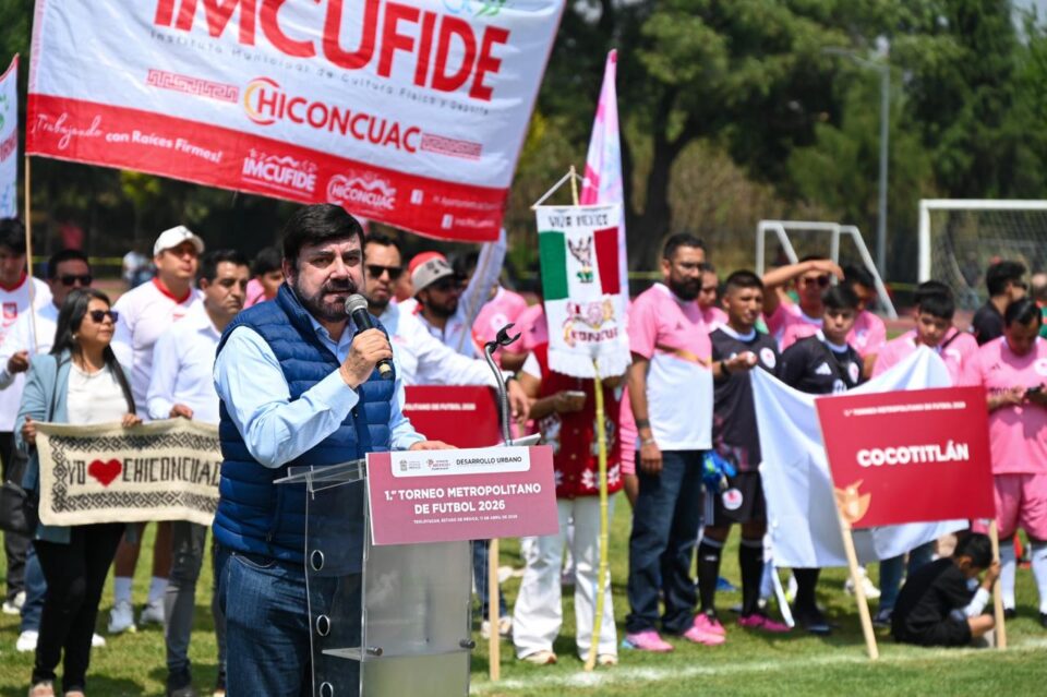 TEOLOYUCAN, Estado de México.– En el marco de la estrategia “Estadio de México. Un Destino Futbolero”, el Gobierno de la Maestra Delfina Gómez Álvarez, a través de la Secretaría de Desarrollo Urbano e Infraestructura (Sedui), puso en marcha el Primer Torneo Metropolitano de Futbol 2026, una fiesta deportiva en la que participan más de 20 municipios del Estado de México, con el objetivo de fortalecer la identidad metropolitana y resignificar la importancia del uso de los espacios públicos recuperados para las familias mexiquenses.