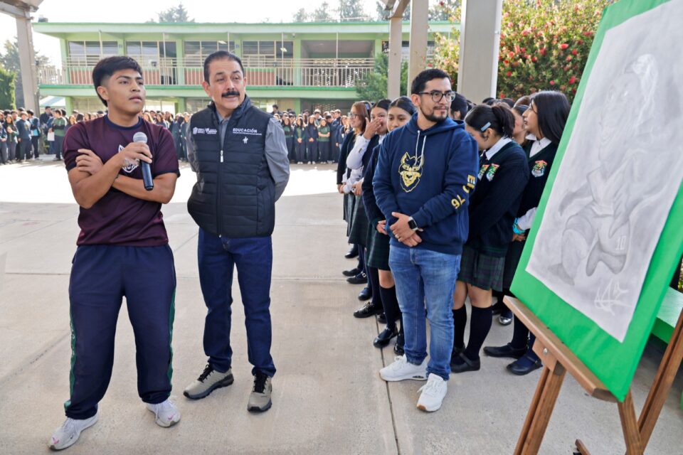 Miguel Ángel Hernández Espejel, Secretario de Educación, Ciencia, Tecnología e Innovación, encabezó el arranque de la jornada en la Escuela Preparatoria Oficial No. 76, en Calimaya, donde estudiantes llevaron a cabo labores de rehabilitación de áreas verdes, limpieza de espacios y elaboración de murales con temática del Mundial Social, en una actividad replicada de manera simultánea en toda la entidad.