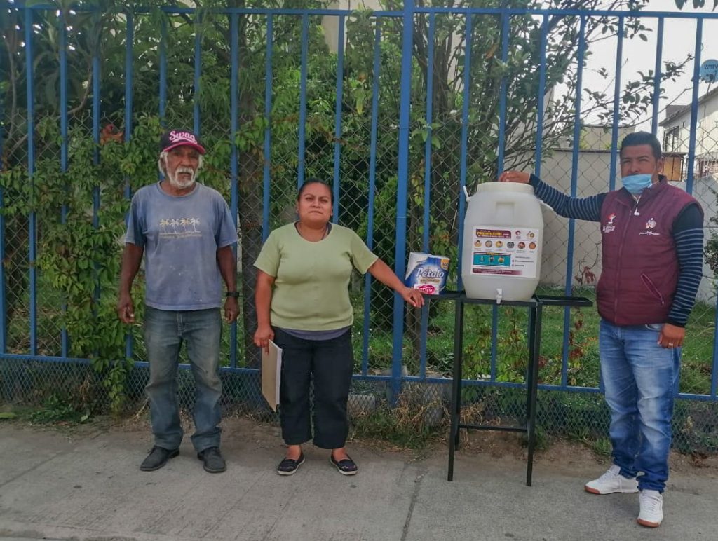 A través del Comité Interno Municipal para la Protección contra Riesgos Sanitarios, se instalan recipientes especiales, con gel antibacterial, así como jabón líquido y en pasta, en lugares estratégicos de cada colonia, para que a la salida o entrada al hogar, sean desinfectadas las manos.