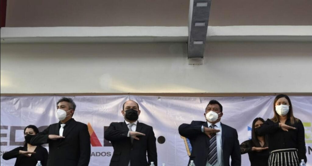 Tequixquiac, Méx.- 7 de diciembre 2021.- Ante la presencia de Israel Jerónimo López, subsecretario de Educación Media Superior y representante de Alfredo del Mazo, gobernador del Estado de México, Luis Raúl Meneses García se comprometió al tomar protesta como alcalde de Tequixquiac en crear una escuela de idiomas para involucrar al municipio en el polo de desarrollo que representa el nuevo aeropuerto.