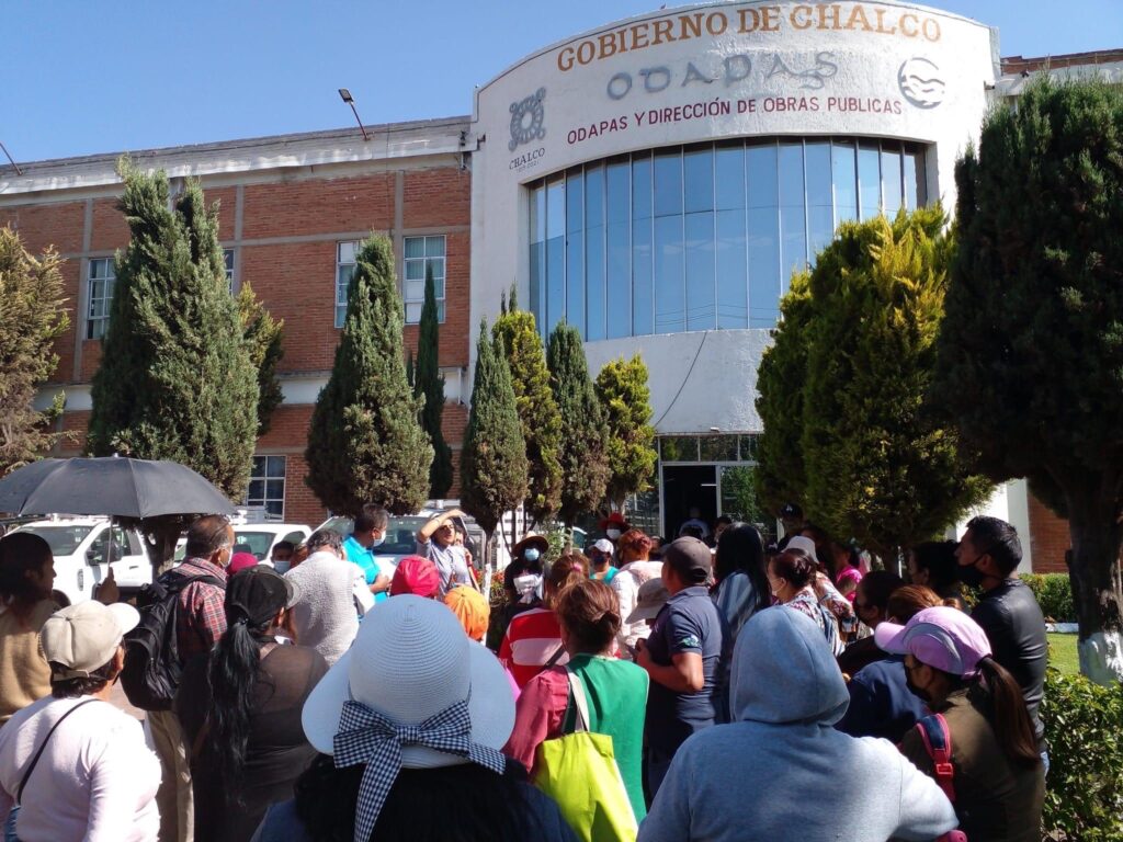 Chalco, Méx.- 18 de mayo 2022.- Habitantes de varias comunidades de Chalco realizaron una manifestación en las instalaciones del Organismo Descentralizado de Agua Potable Alcantarillado y Saneamiento (ODAPAS) para exigir solución a la falta de servicio de agua y drenaje.