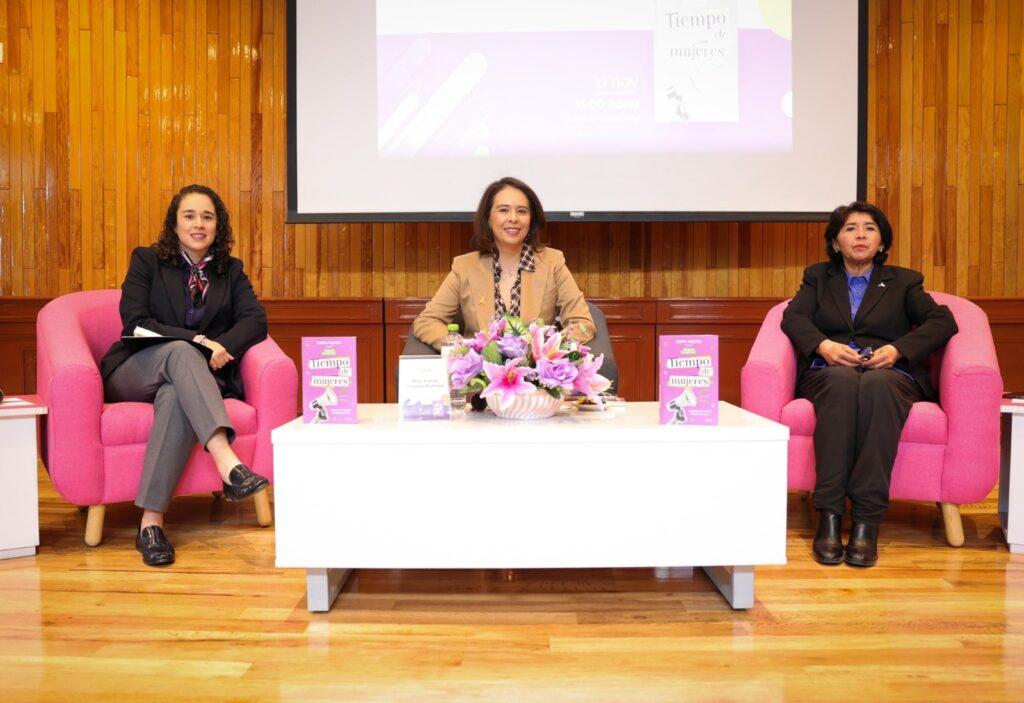 Durante la presentación del libro Tiempo de Mujeres. Caminos por recorrer en esta nueva era, la Consejera Presidenta del Instituto Electoral del Estado de México (IEEM), Amalia Pulido Gómez, afirmó que, en un escenario que considera a las mujeres como un grupo social homogéneo y con características necesidades similaresidénticas, la obra coordinada por la Consejera Electoral, Karina Ivonne Vaquera Montoya, reúne a especialistas de diversos ámbitos del conocimiento para reflexionar sobre temáticas como que van desde los derechos sexuales y reproductivos, hasta la migración y la inclusión en el ámbito laboral.